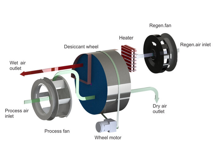 These businesses make considerable use of desiccant wheels for moisture control in order to attain the allowable humidity level. Other dehumidification technologies, such as thermal wheels and compressor-driven dehumidifiers, have a number of advantages over desiccant wheels.