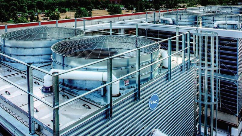 A cooling tower is a heat rejection device that removes excess heat from the atmosphere created by the machinery inside the block using a stream of cooled water. A small amount of water can evaporate into a stream of flowing air through the cooling tower’s evaporative process, which effectively cools the surrounding region.