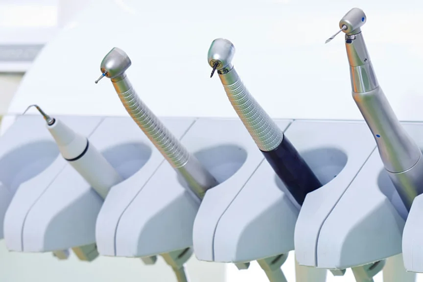 A dental handpiece is an instrument used to hold dental burs, disks, or cups in order to perform tooth removal or to perform cleaning and polishing of teeth or restorative material. The instrument is available in two modalities that includes air driven and electrically driven handpieces. It is powered by either electric motor or air turbines.