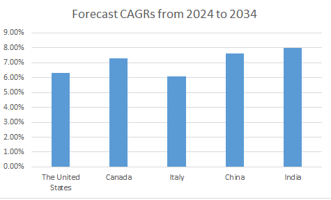 - Singapore experiences significant growth, projected at a CAGR of 6.3% by 2034.