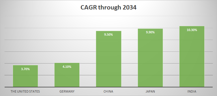 • The market in China will expand at a CAGR of 9.5% through 2034.