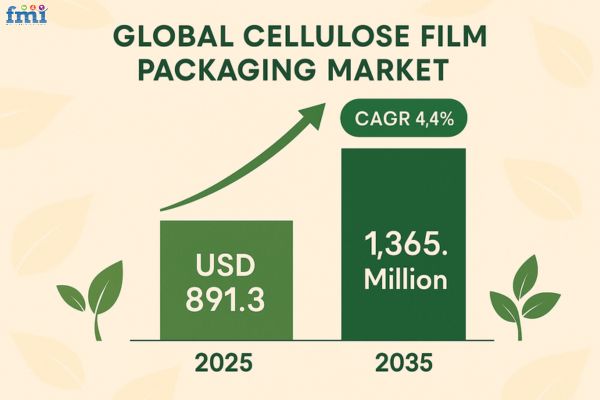 - Market Size & Growth: The cellulose film packaging market is forecasted to grow from USD 891.3 million in 2025 to USD 1,365.1 million by 2035, at a CAGR of 4.4%. In 2024, global revenue stood at USD 854.8 million.