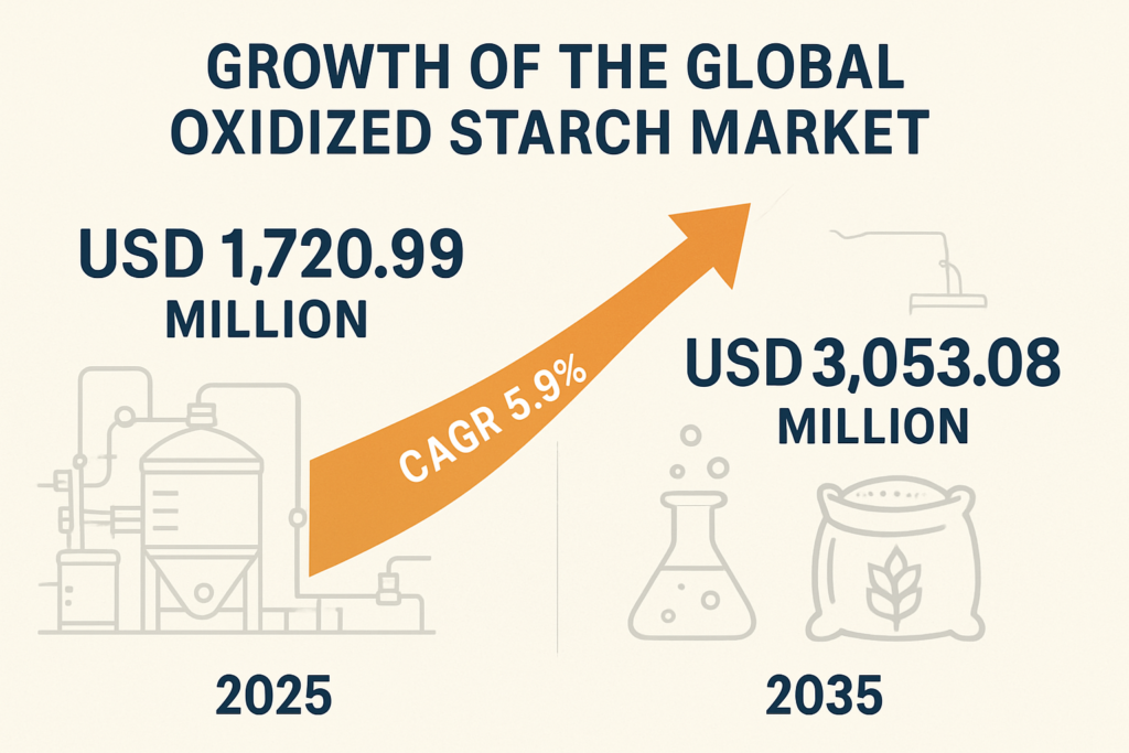 - Market Size and Growth: The oxidized starch market was valued at approximately USD 1,720.99 million in 2025 and is projected to reach USD 3,053.08 million by 2035, expanding at a CAGR of 5.9% during the forecast period.