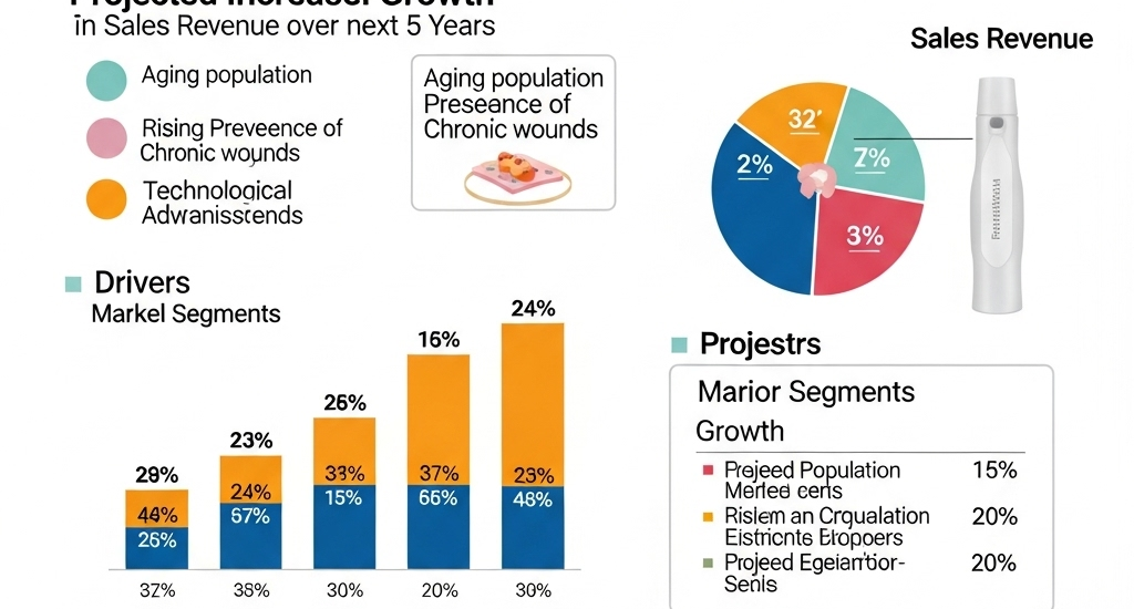 - Major applications include diabetic ulcers, burns, surgical wounds, and cosmetic surgery.