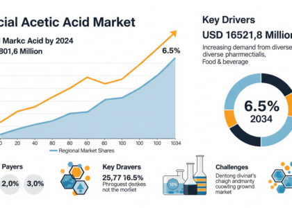 The global glacial acetic acid industry size is projected to be valued at USD 8801.6 million in 2024 and