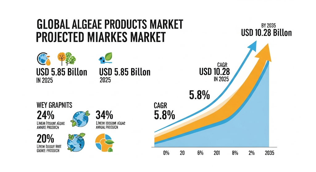 The global algae products market is on a strong upward trajectory, projected to grow from USD 5.85 billion in 2025 to USD 10.28 billion by 2035, expanding at a CAGR of 5.8%. The rising demand for sustainable, plant-based nutrition and innovations in renewable energy are fueling this growth. India is set to lead with the fastest CAGR of 6.5%, followed by China and Japan. Algae-based biofuels, dietary supplements, and functional foods are gaining traction globally, especially in health-conscious and environmentally aware markets.