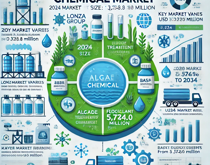 The global algae treatment chemical market is poised for significant expansion, with its valuation anticipated to climb from an estimated USD 3,238.8 million in 2024 to a remarkable USD 5,724.0 million by 2034, exhibiting a robust Compound Annual Growth Rate (CAGR) of 5.5%. This impressive trajectory is fundamentally driven by increased concerns about water pollution, the rising occurrence of harmful algal blooms (HABs), and stringent regulatory frameworks governing water quality worldwide.