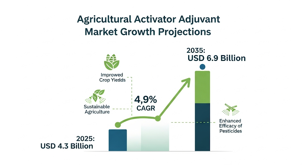 The global agricultural activator adjuvant market is projected to experience robust growth, escalating from USD 4.3 billion in 2025 to a staggering USD 6.9 billion by 2035, demonstrating a Compound Annual Growth Rate (CAGR) of 4.9%. This significant expansion is primarily fueled by the escalating demand for crop-specific adjuvants and the increasing integration of precision agriculture technologies across the globe.