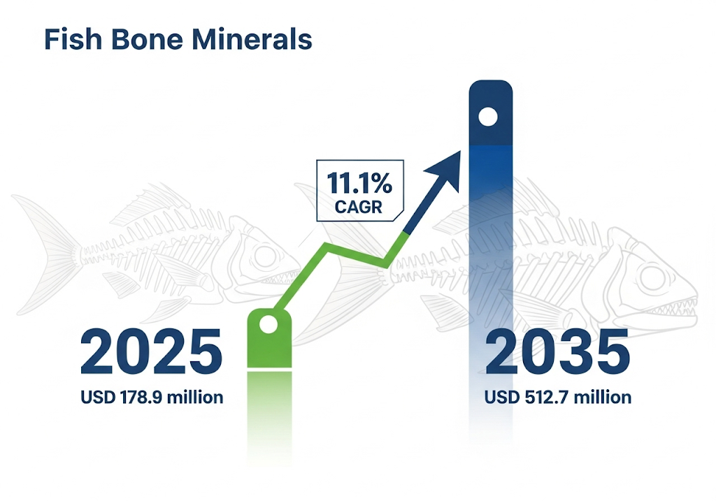 The global fish bone minerals market is poised for remarkable growth, projected to rise from USD 178.9 million in 2025 to USD 512.7 million by 2035, achieving an impressive compound annual growth rate (CAGR) of 11.1%. This surge is attributed to increasing consumer demand for natural, sustainable sources of essential minerals, a rising focus on bone health, and technological innovation in micronized powder applications. As global food and supplement industries embrace eco-friendly alternatives, fish bone minerals are emerging as a premium ingredient for fortified foods, organic fertilizers, and nutraceuticals.