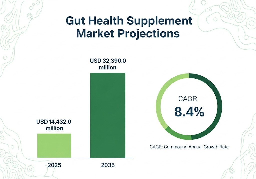 The global gut health supplement market is on a trajectory of significant expansion, with a new forecast projecting its value to more than double over the next decade. The market, estimated at USD 14,432.0 million in 2025, is expected to reach an impressive USD 32,390.0 million by 2035, growing at a robust Compound Annual Growth Rate (CAGR) of 8.4%. This surge is a direct result of a global shift in consumer perception, with an increasing understanding of the profound link between a healthy gut microbiome and overall well-being.