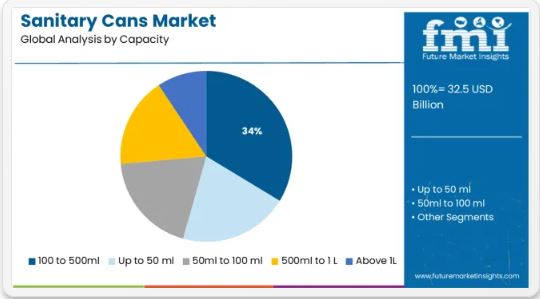 Capacity Segment – 100 to 500ml Leads with 33.7% Share in 2025