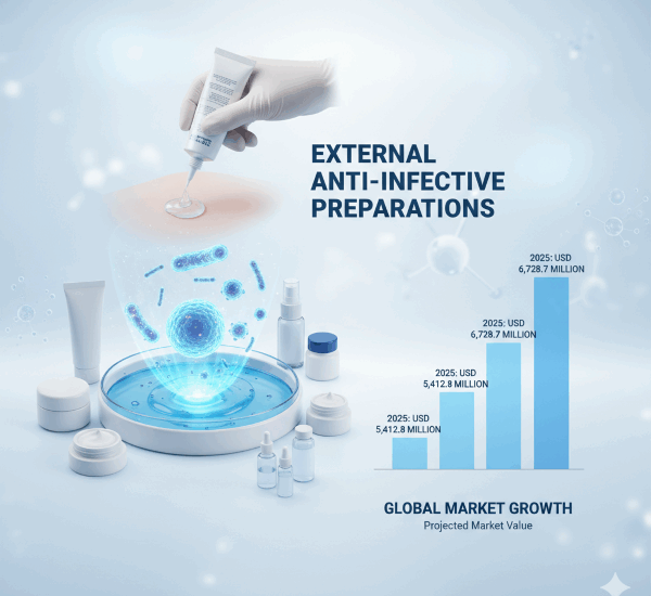 The global external anti-infective preparations market is on track for sustained growth, with revenues projected to rise from USD 5,412.8 million in 2025 to approximately USD 6,728.7 million by 2035, representing an absolute increase of USD 1,315.9 million and a compound annual growth rate (CAGR) of 2.2%. This expansion is fueled by the increasing prevalence of external infections and the growing demand for localized antimicrobial treatment solutions across hospitals, clinics, and consumer healthcare settings.