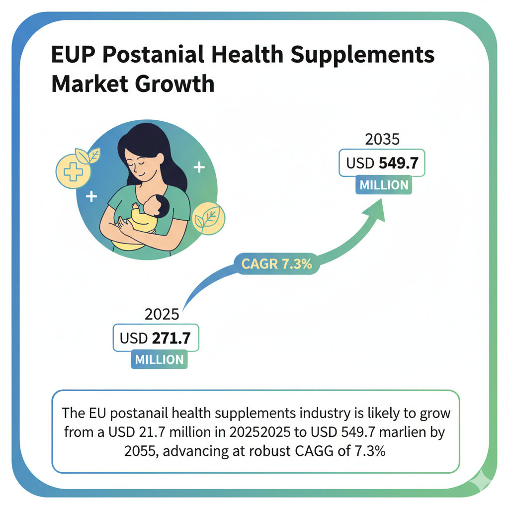 The demand for postnatal health supplements across the European Union is entering a transformative decade. According to the report “Demand for Postnatal Health Supplements in EU: Outlook and Forecast (2025–2035)” the market is expected to surge from USD 271.7 million in 2025 to USD 549.7 million by 2035, expanding at an impressive CAGR of 7.3%. This growth reflects a profound shift in how healthcare providers, policymakers, and consumers view maternal nutrition and postpartum recovery.