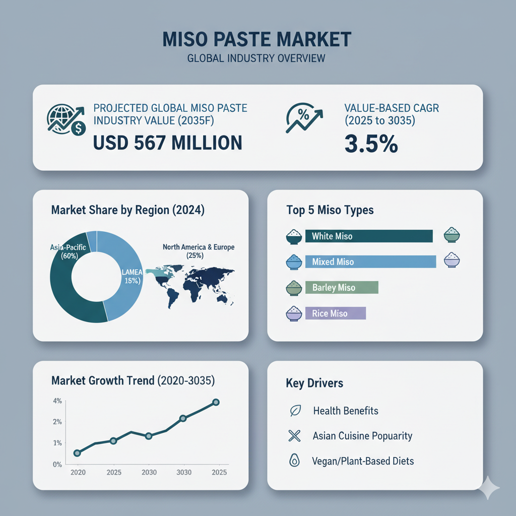 The global miso paste market is entering a vibrant new era of growth, innovation, and opportunity. According to a recent industry report, the global miso paste market was valued at approximately USD 401 million in 2025 and is projected to reach USD 567 million by 2035, growing at a compound annual growth rate (CAGR) of 3.5% over the forecast period.