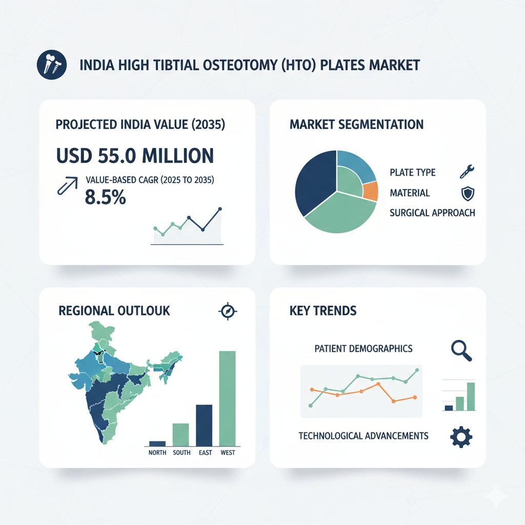 The “India High Tibial Osteotomy (HTO) Plates Market – Insights, Trends & Forecast 2025-2035” provides a comprehensive view of market dynamics, covering product segmentation, material trends, end-user analysis, competitive benchmarking, and key technological advancements. It serves as an essential resource for manufacturers, investors, and healthcare professionals looking to understand the evolving orthopedic device landscape in India.