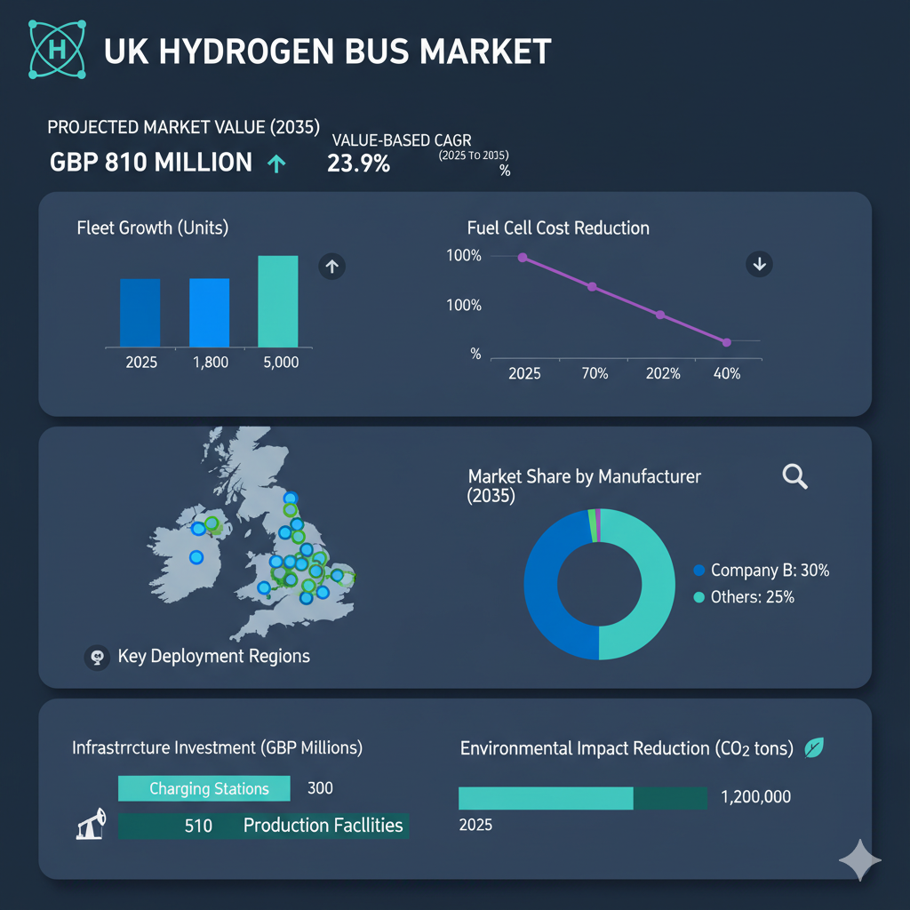 The UK’s hydrogen bus market is accelerating at break-neck speed, and both established manufacturers and new entrants are positioning themselves to ride the wave. According to the latest industry analysis, the market is forecast to grow to GBP 810 million by 2035, with a compound annual growth rate (CAGR) of 23.9 % from 2025 to 2035.