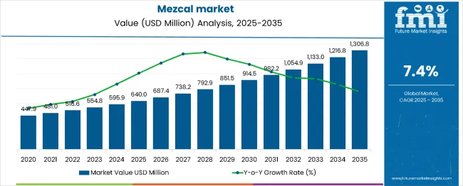 The global mezcal market is set to experience remarkable growth over the next decade, projected to expand from USD 640 million in 2025 to approximately USD 1,312 million by 2035. This represents an absolute increase of USD 672 million, translating into a total growth of 105% and a robust compound annual growth rate (CAGR) of 7.4% from 2025 to 2035.