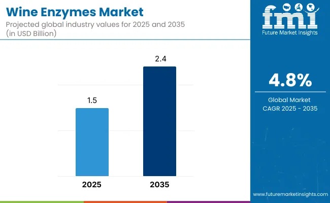 The global wine enzymes market is poised for robust growth, with an estimated valuation of USD 1.5 billion in 2025. The market is projected to reach USD 2.4 billion by 2035, registering a compound annual growth rate (CAGR) of 4.8% over the forecast period. This growth reflects an absolute dollar opportunity of USD 870 million, equivalent to a 1.56 times increase in market size.