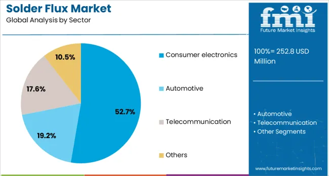 • Consumer Electronics (52.7% in 2025): Smartphones, wearables, and tablets remain key revenue drivers, relying on high-purity flux for micro-soldering precision.