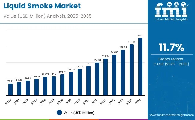 The global liquid smoke market is accelerating as food brands and consumers adopt natural, efficient, and authentic smoky flavor solutions. Valued at USD 116 million in 2025, the industry is forecast to reach USD 350.5 million by 2035, propelled by expanding processed meat manufacturing, barbecue culture, and premium flavor innovations. Advanced extraction technologies and clean-label adoption are driving a pivotal shift from traditional smoking to modern liquid smoke systems.