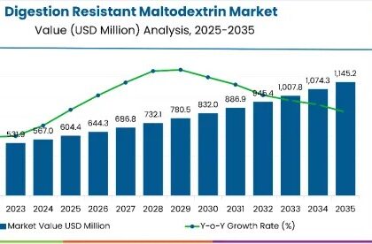 The global digestion resistant maltodextrin market is projected to grow from USD 604.4 million in