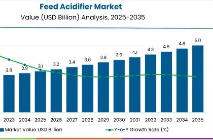 The global feed acidifier market is estimated to be valued at USD 3.1 billion in