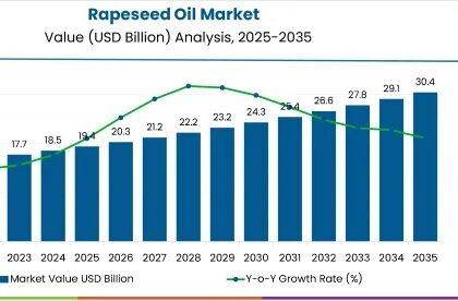The global rapeseed oil market is projected to grow from USD 19.4 billion in 2025