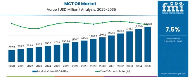 The global MCT oil market is on track for strong expansion, rising from USD 973.2 million in 2025 to USD 2,005.8 million by 2035, reflecting a robust CAGR of 7.5%. This growth is underpinned by surging demand for fast-absorbing energy sources, expanding applications in dietary supplements, and rising adoption of ketogenic diets across global consumer segments.