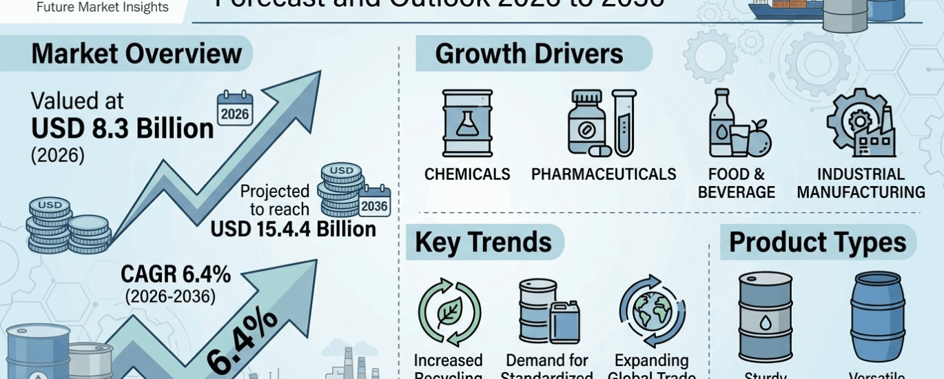 The global industrial drum market is entering a significant growth phase, driven by rising demand for safe, durable, and standardized storage and transportation solutions across chemicals, pharmaceuticals, food & beverage, and industrial manufacturing sectors. Valued at USD 8.3 billion in 2026, the market is projected to reach USD 15.4 billion by 2036, reflecting a CAGR of 6.4% over the forecast period.