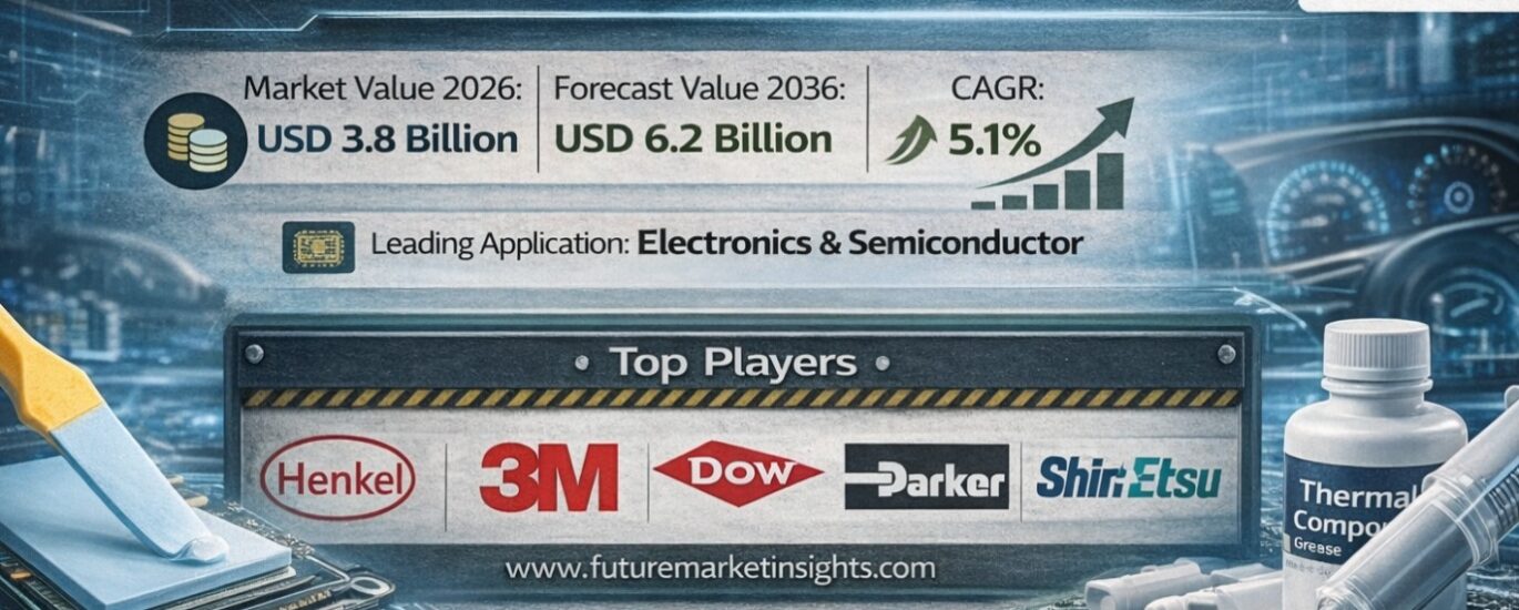 The global thermal interface material market is valued at USD 3.8 billion in 2026 and is projected to reach USD 6.2 billion by 2036, expanding at a steady CAGR of 5.1%. Growth is driven by increasing need for efficient heat dissipation in compact electronic devices, rising adoption of electric vehicles, and expansion of data center infrastructure globally.