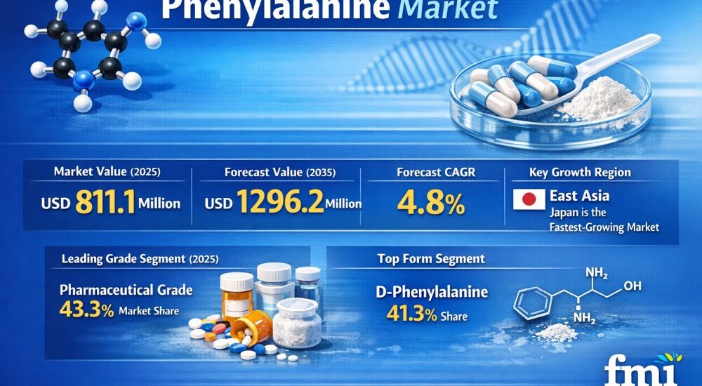 Phenylalanine Market to Reach USD 1,296.2 Million by 2035 as Demand for Functional Foods and Pharmaceutical Applications Accelerates