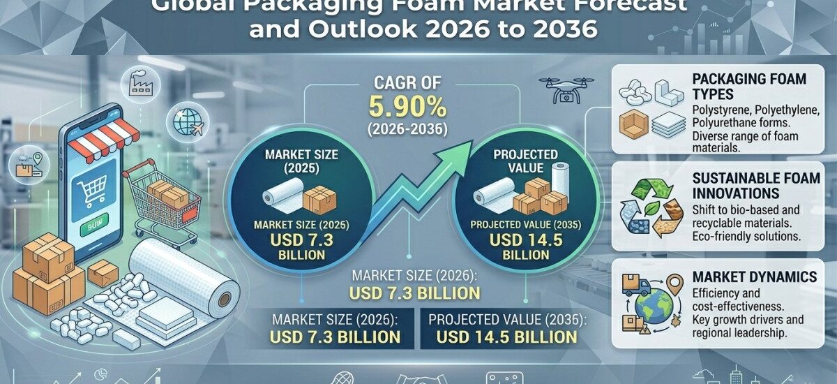 The global Packaging Foam Market is undergoing a structural transformation, shifting from volume-driven growth to efficiency-led value creation. The industry is projected to reach USD 7.3 billion in 2026 and expand to USD 14.5 billion by 2036, registering a CAGR of 5.90% during the forecast period.