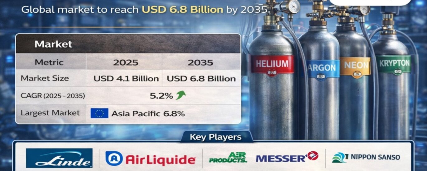 Rising adoption of rare gases such as argon, helium, and neon in semiconductor fabrication, metal processing, and medical imaging is supporting steady market expansion globally.
