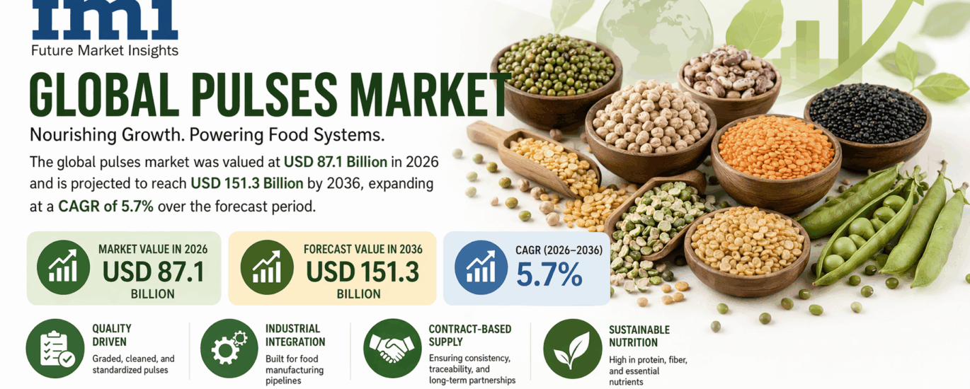 The global pulses market is transitioning from a commodity-focused sector into a processing-calibrated industrial ingredient ecosystem. Growth is increasingly supported by grading precision, moisture calibration, protein classification, and structured procurement frameworks.
