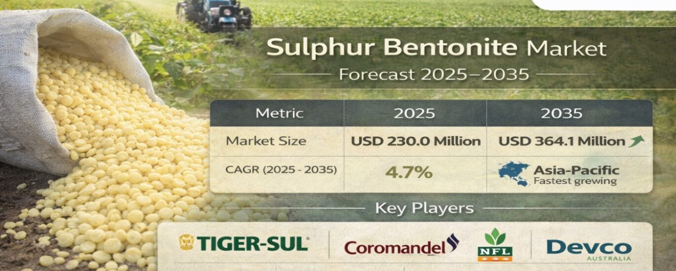 The sulphur bentonite market is expected to grow steadily through 2035, supported by rising demand for efficient fertilizers, increasing soil health awareness, and continued advancements in agricultural technologies.