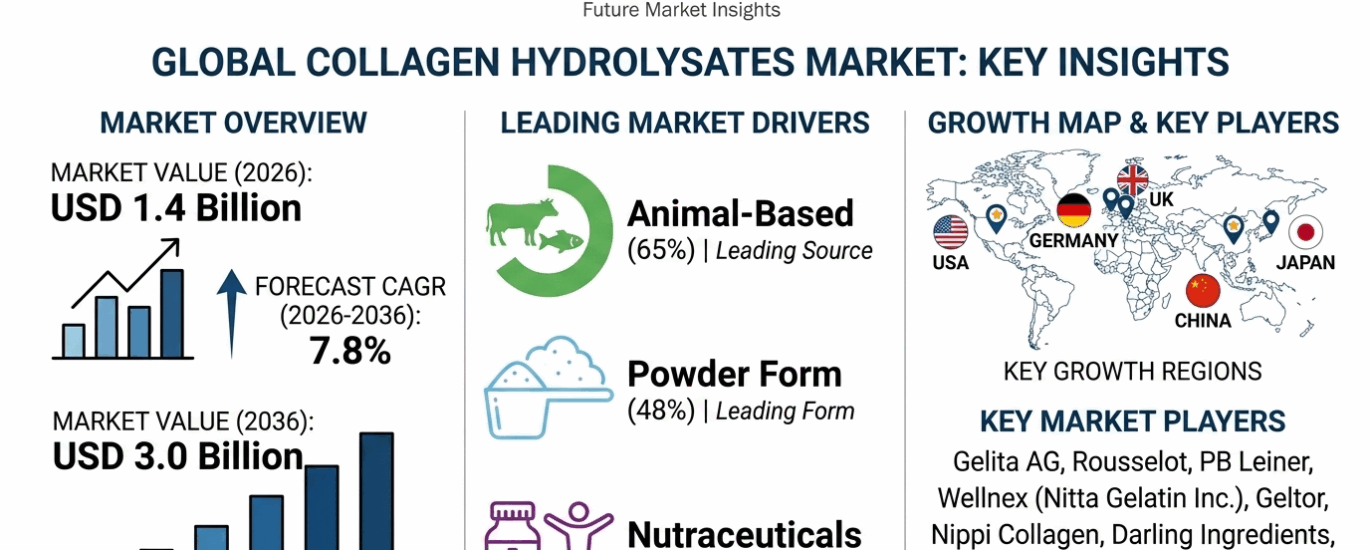 Collagen Hydrolysates Market to Reach USD 3.0 Billion by 2036 as Functional Nutrition and Beauty-from-Within Trends Accelerate