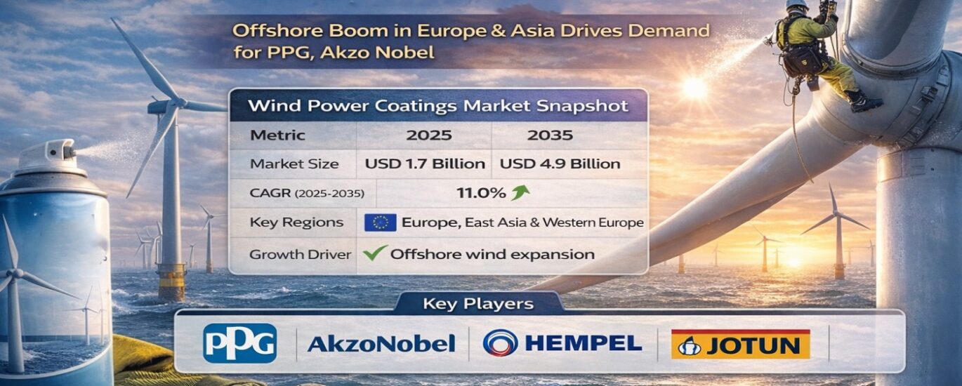 Wind Power Coatings Market to Hit USD 4.9B by 2035, Offshore Boom in Europe & Asia Drives Demand for PPG, Akzo Nobel