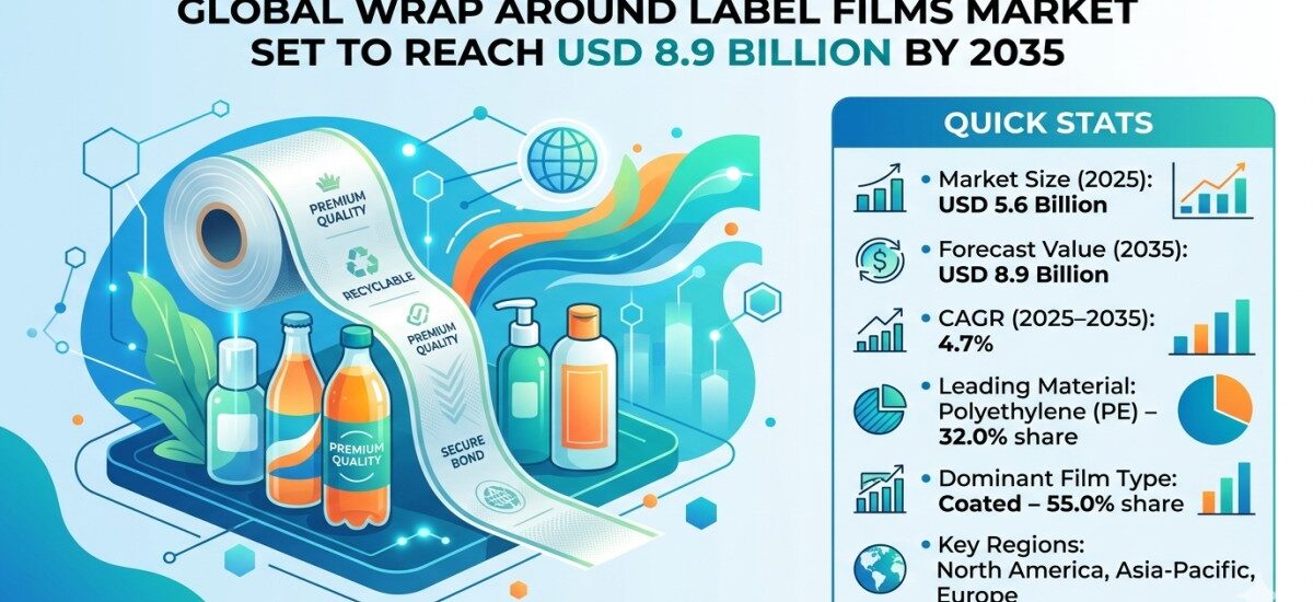 The global wrap around label films market is poised for steady expansion, projected to grow from USD 5.6 billion in 2025 to USD 8.9 billion by 2035, registering a CAGR of 4.7% during the forecast period. The market is gaining momentum as industries increasingly adopt high-performance labeling solutions that combine visual appeal, cost efficiency, and sustainability, According to the latest market analysis by Future Market Insights