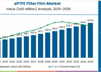 The global ePTFE (expanded polytetrafluoroethylene) filter film market is projected to grow from USD 397.8