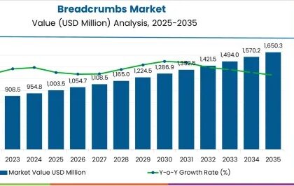 The global breadcrumbs market, valued at USD 1,003.5 million in 2025, is projected to reach